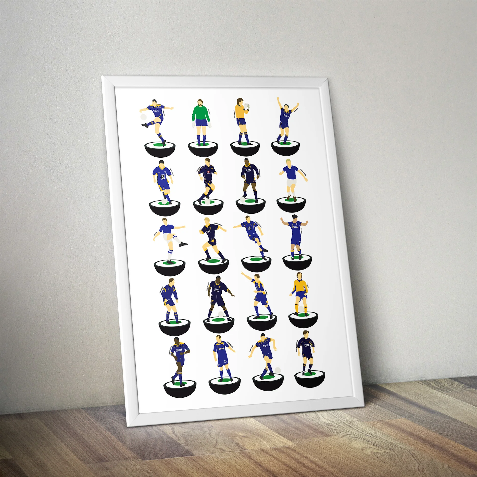 It features artwork inspired by past and present Wimbledon players in the Subbuteo style, including players like Denis Wise, Alan Kimble, Vinnie Jones and Robbie Earle.
